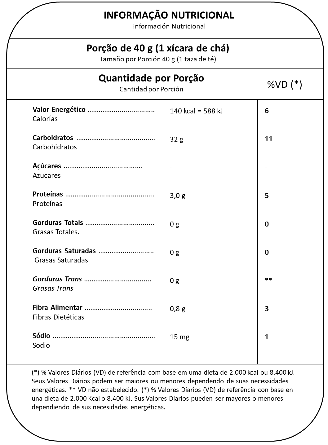 INGREDIENTES: Farinha de arroz, farinha de milho (Streptomyces viridochromogenes e/ou Bacillus thuringiensis e/ou Agrobacterium tumefaciens e/ou Agrobacterium sp.), açúcar, sal, extrato de malte em pó e antiumectante carbonato de cálcio. CONTÉM GLÚTEN. ALÉRGICOS: CONTÉM DERIVADOS DE CEVADA. PODE CONTER AVEIA, CENTEIO, SOJA E TRIGO.